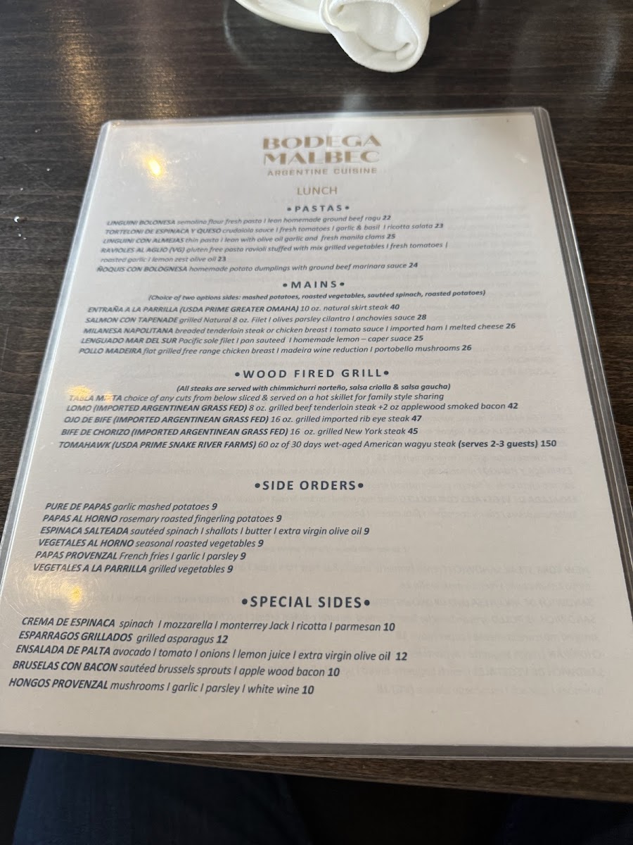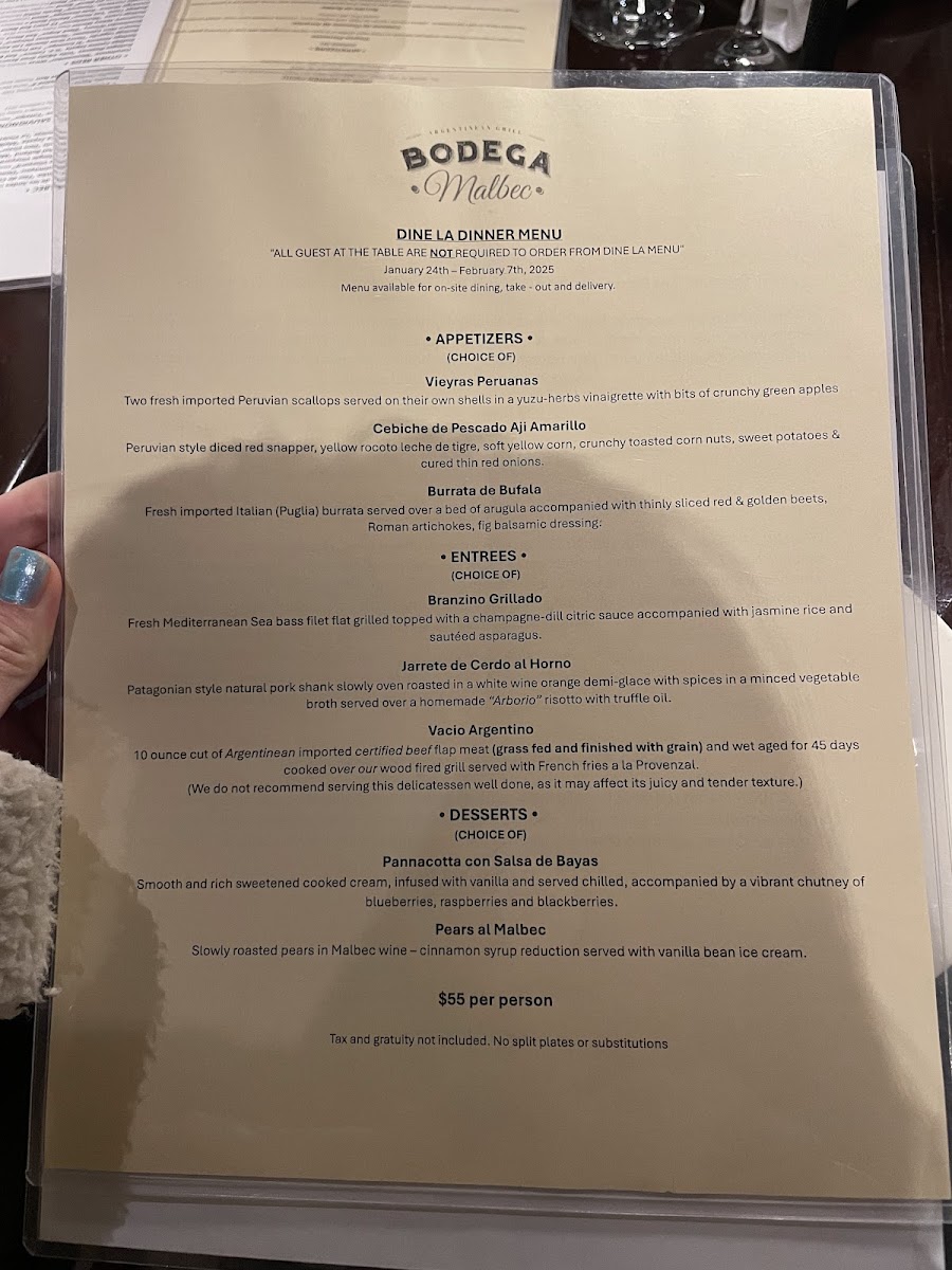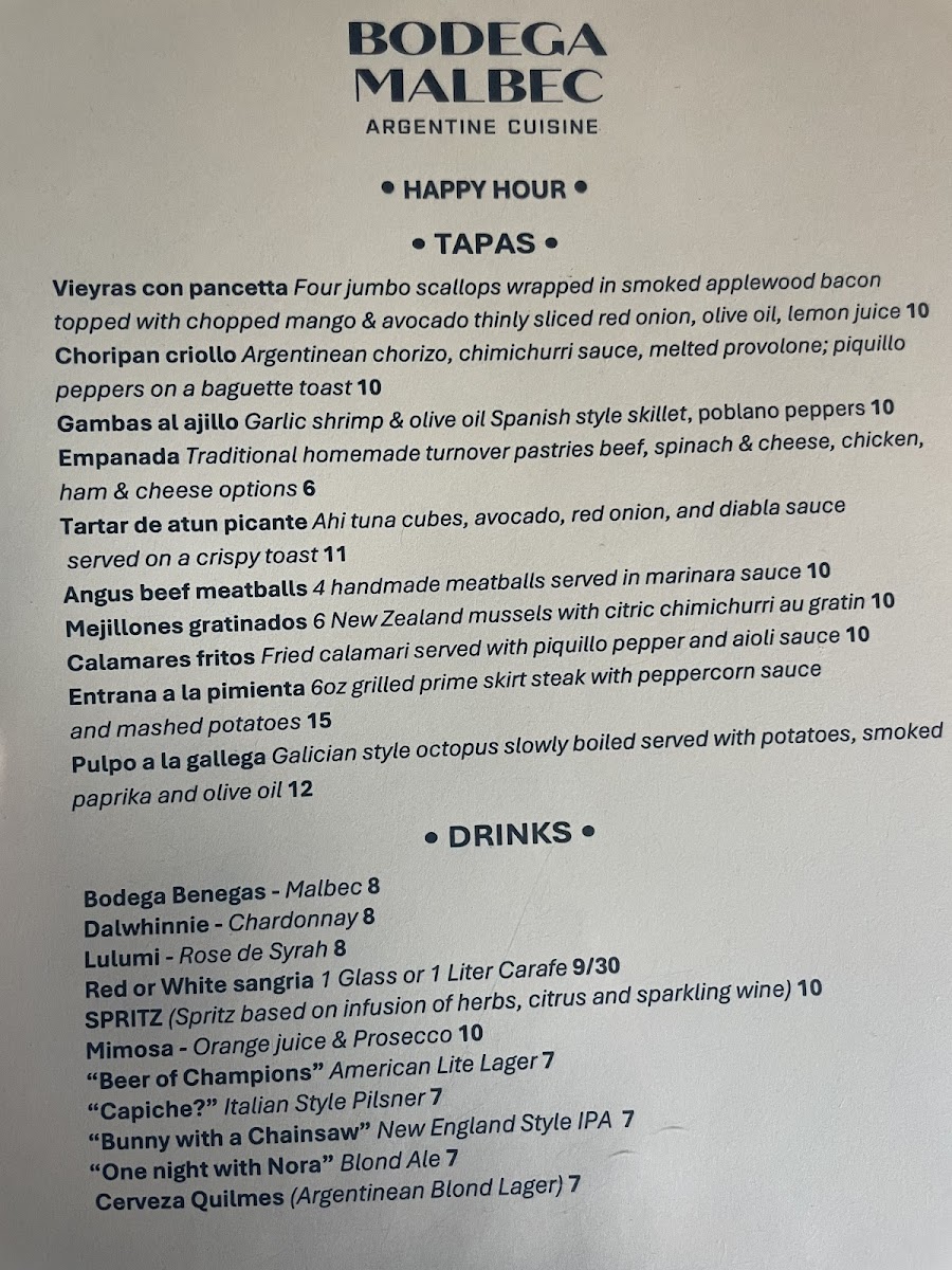Bodega Malbec Menu