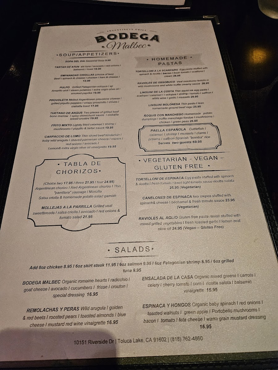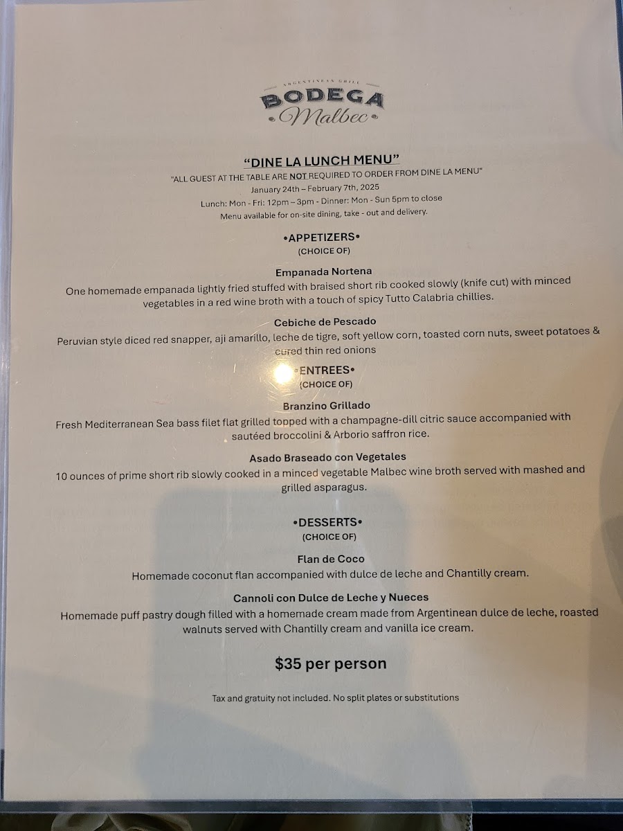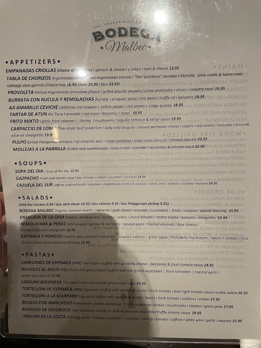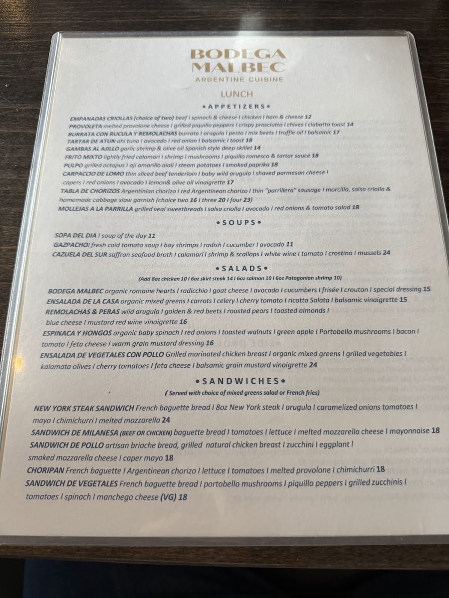 Bodega Malbec Menu